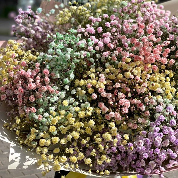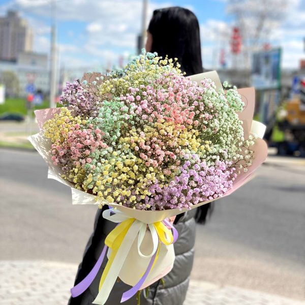 Пышный букет из радужной гипсофилы