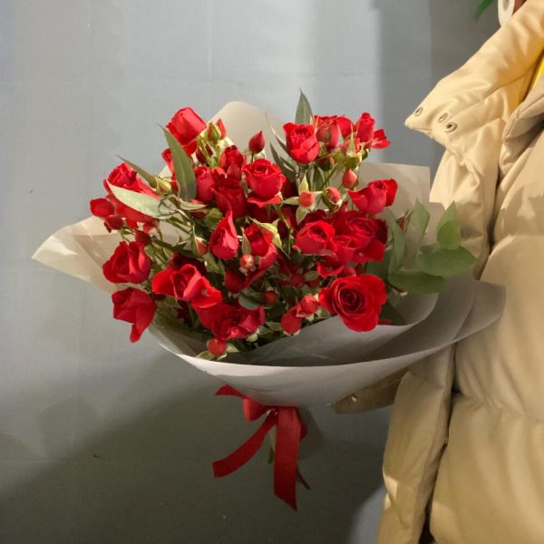 Монобукет из красных кустовых роз